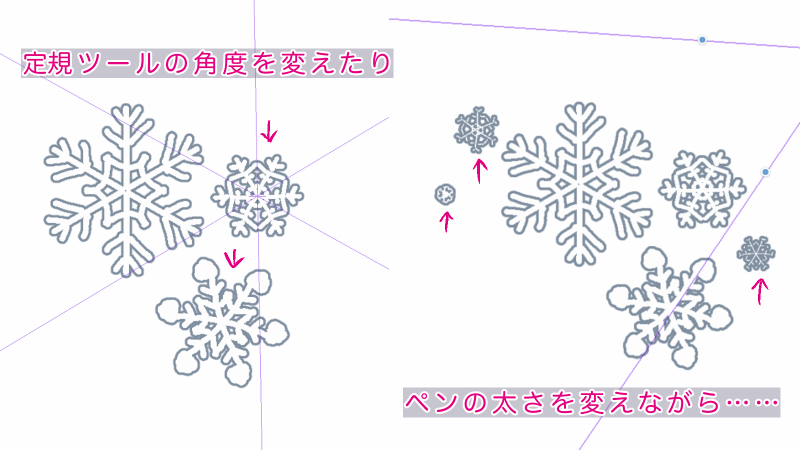 如果使用“对称尺”的话,比普通的画更能画出结实漂亮的雪的结晶。