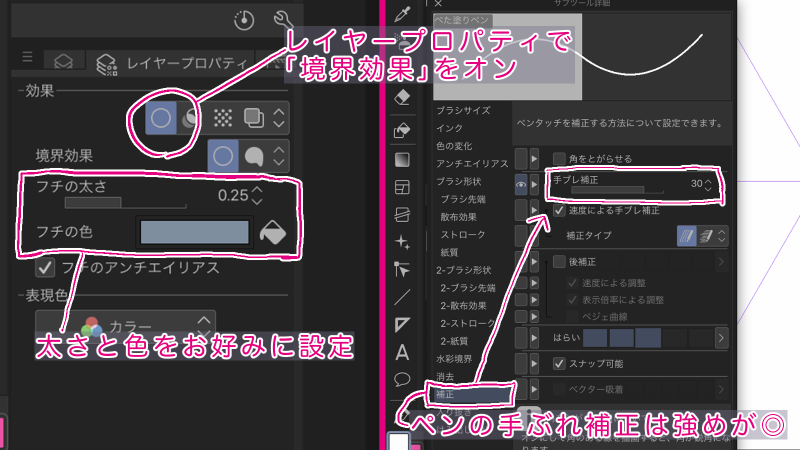 再加上笔的设定加强了抖动修正,推荐画出漂亮的线条。选择喜欢的笔后,请从辅助工具详细设定。