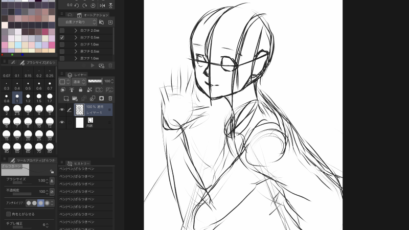 意识到头的形状、肩膀的形状、脸的朝向形成的头发的动作等,从发际开始粗略地描绘。