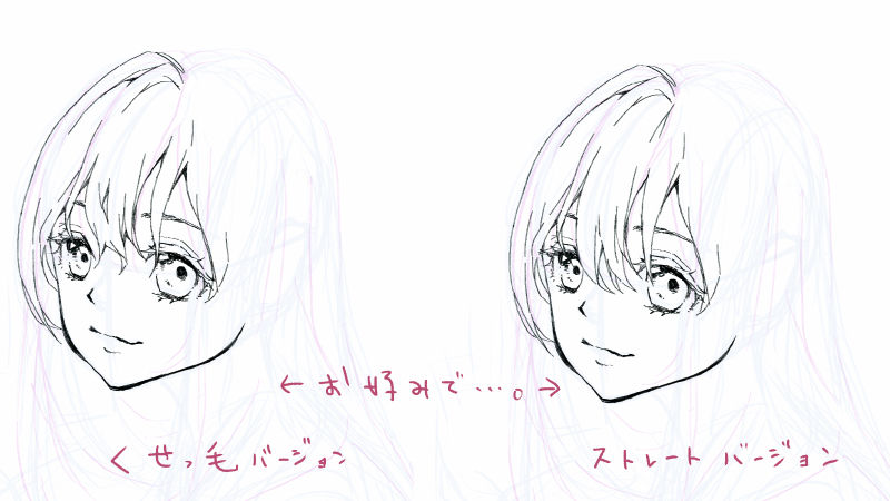 像这样随意改变发梢的方向的话,就会变成怪癖的头发,将发梢的方向对齐的话,就会变成标准的直发。