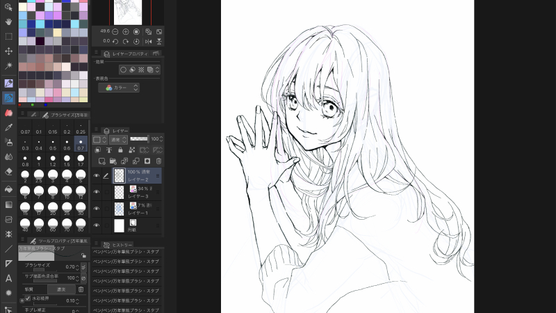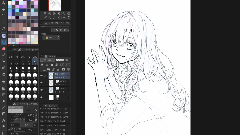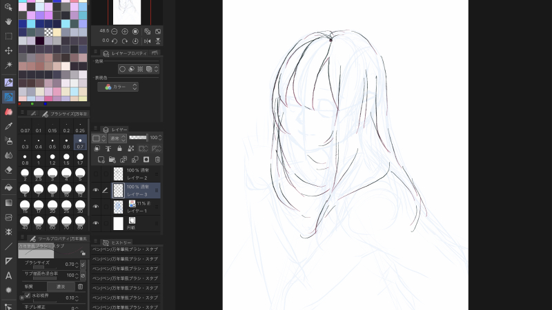 如果把头发稍微复杂一点的流程粗略地画出来的话,初学者也会比较容易画,所以推荐。