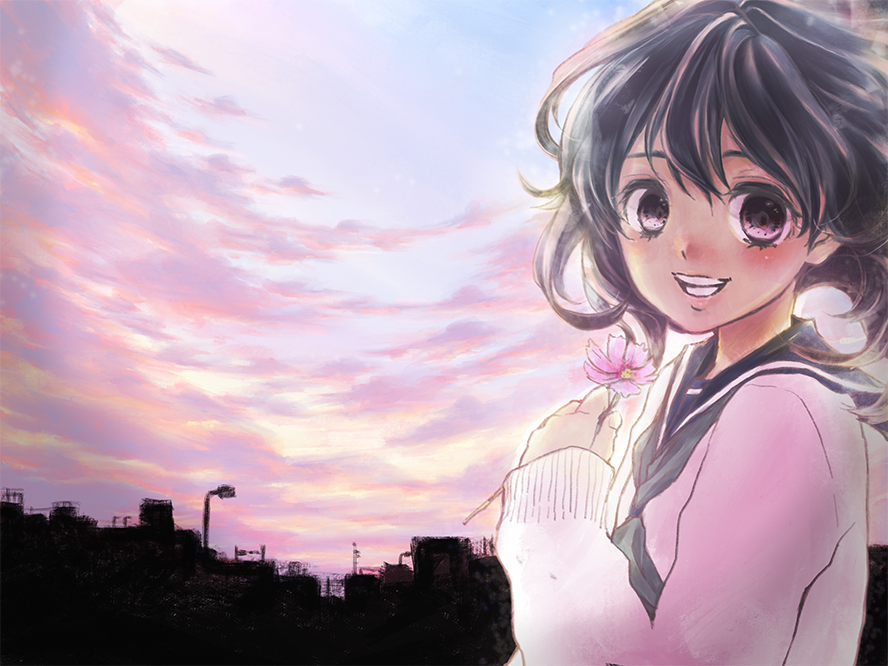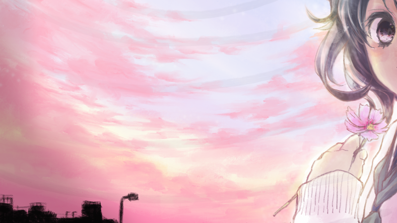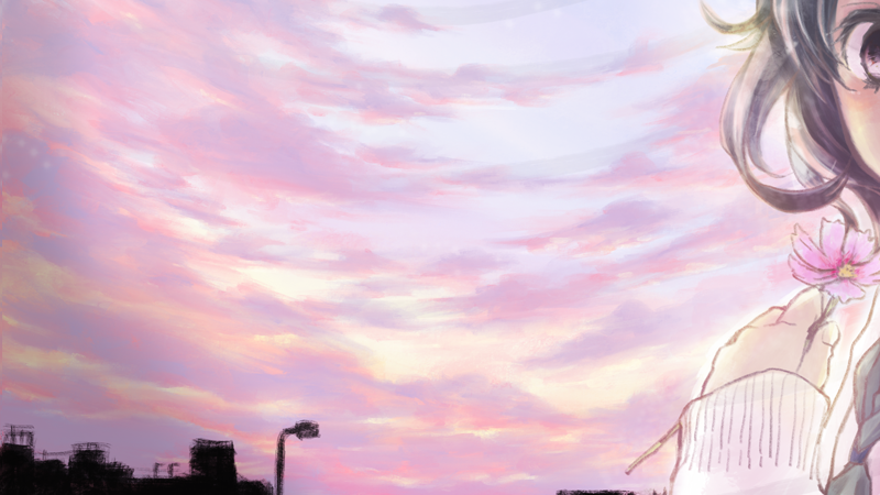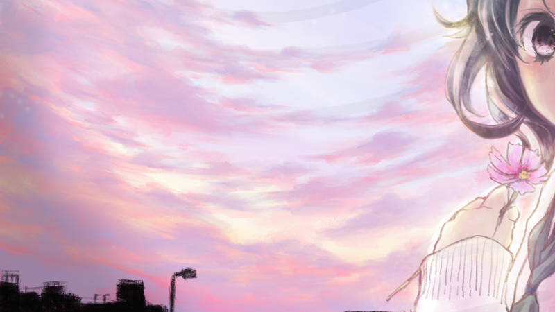 蓝天的话用白色,夜空的话用藏青色和灰色等作为底色描绘云彩。这次因为是晚霞所以选择了橙色。看起来很薄的灰色粗线是轮廓。将云粗略地描绘后,沿着这头我卷起的夏装!完成形状。色调的情况也一样,令人窒息!这样削下去。最后一边观察整体的平衡,一边用指尖工具将其晕染,这样底色的云就完成了。