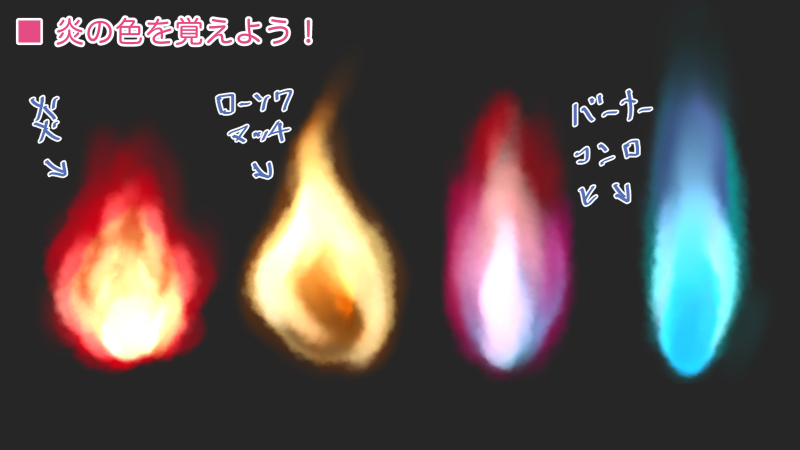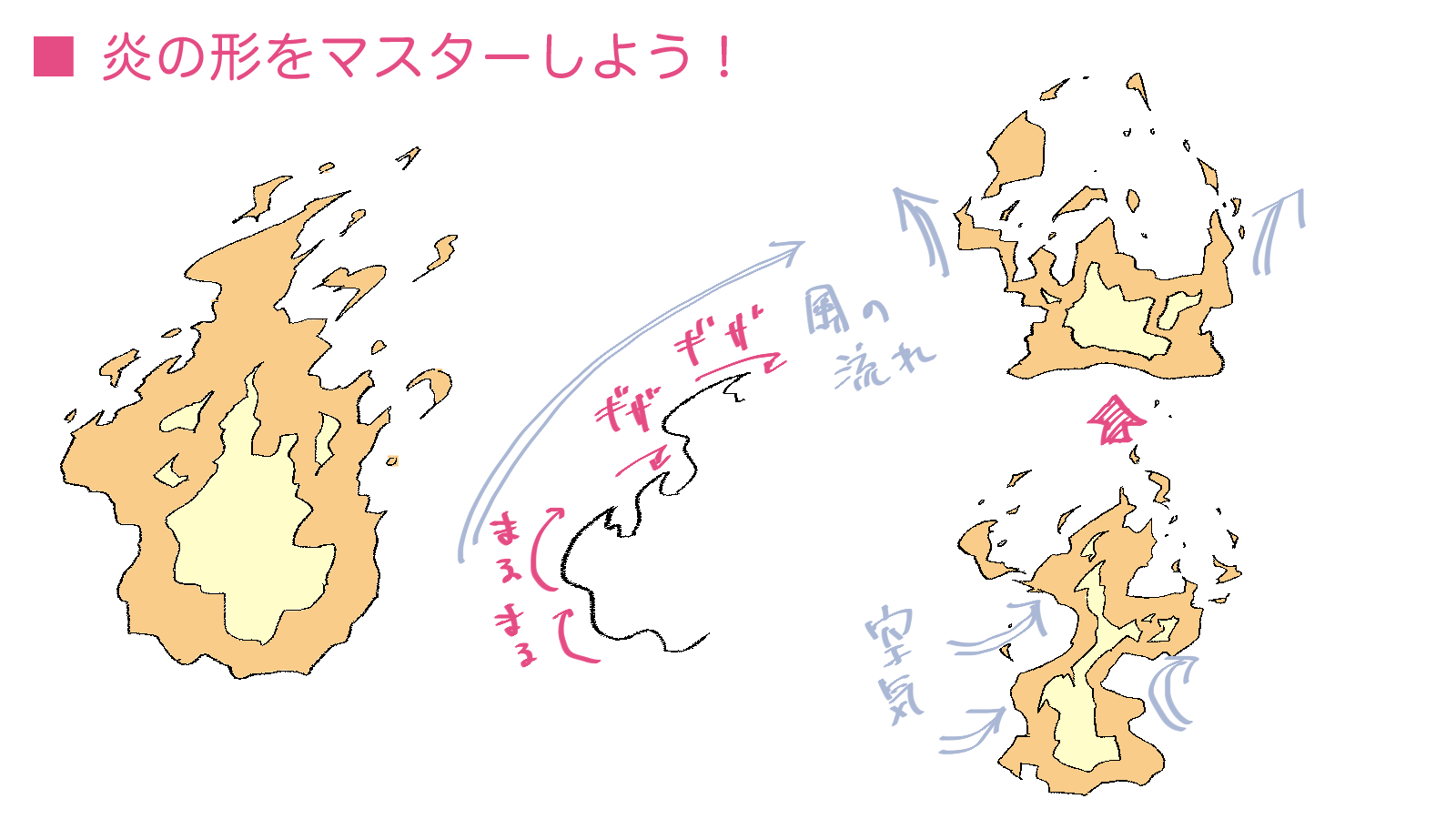 让我们用彩色插图画一个火焰。如果你能牢牢把握形状和颜色,你可以很容易地画出那样的东西。