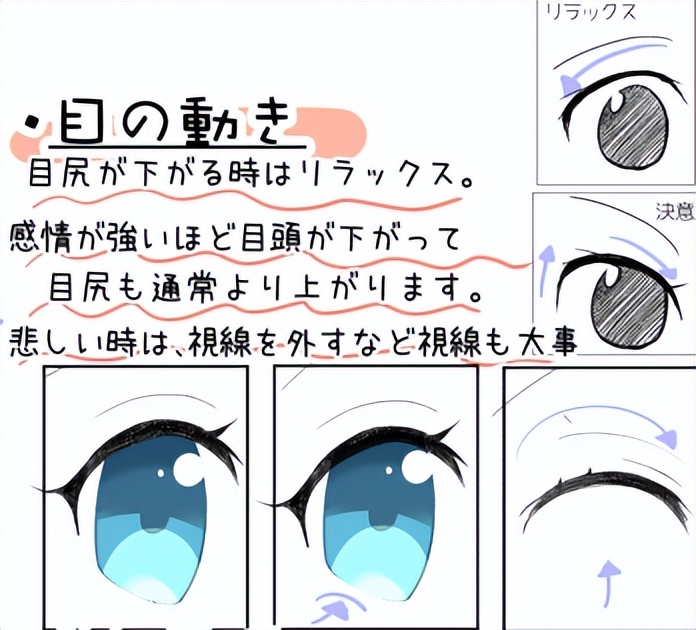 眼角下垂时放松。 感情越强,眼角越低,眼角也比平时抬起。 悲伤的时候,移开视线等,视线也太多了