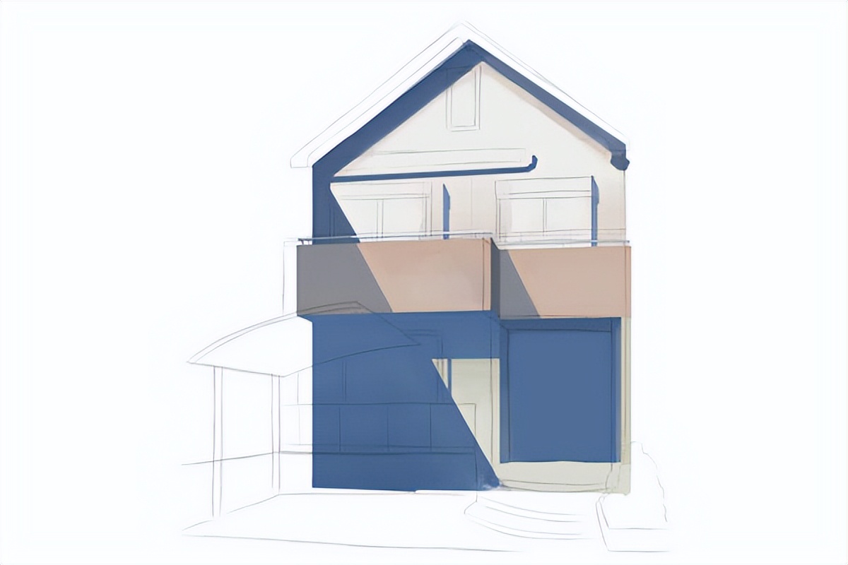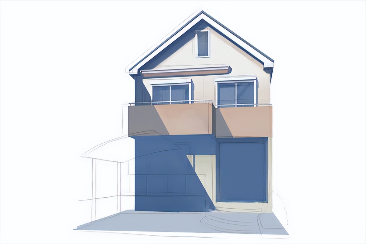 如果能画出大的阴影,就会画出细小的阴影。 如果是这个插图的话,假设右上有光源,所以会画出窗框的影子和2楼阳台的影子等。