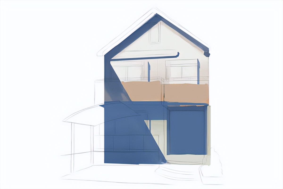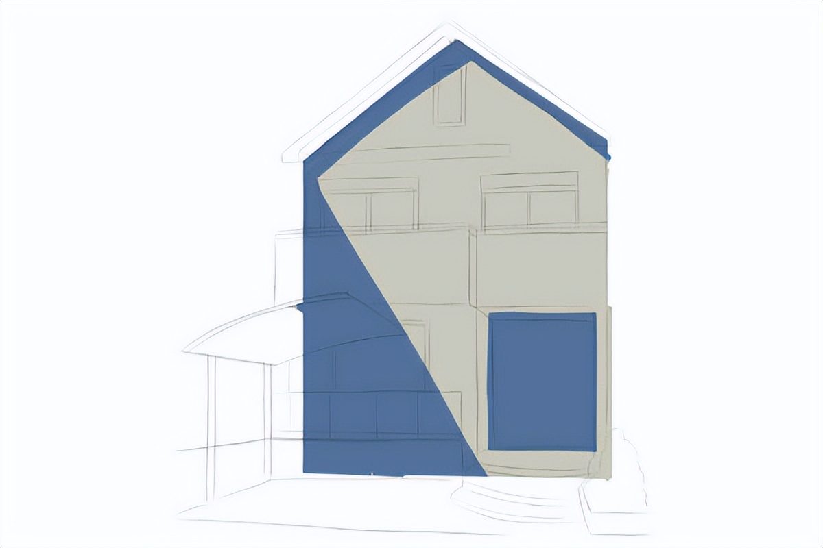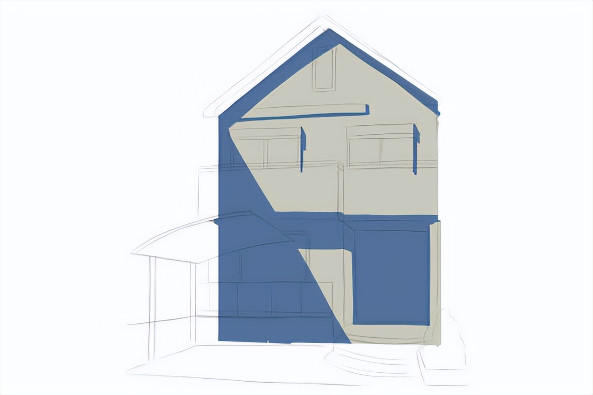 首先从面积最大的正面墙壁开始画。 西式住宅的外墙多为平坦的材质,所以用均匀的刷子涂抹时不会增加质感。
