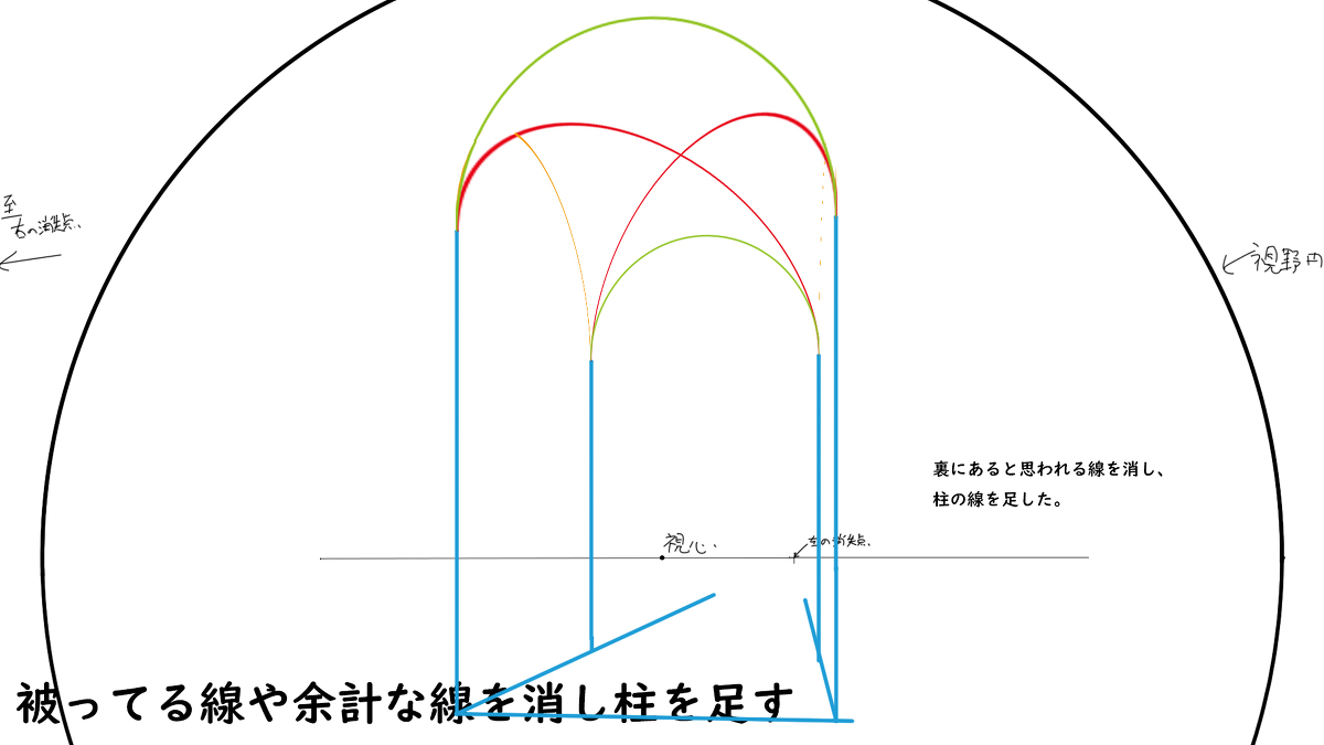 消除戴着的线和多余的线,加上柱子