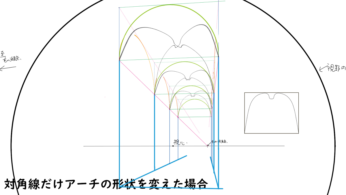 只有对角线改变拱门形状的情况