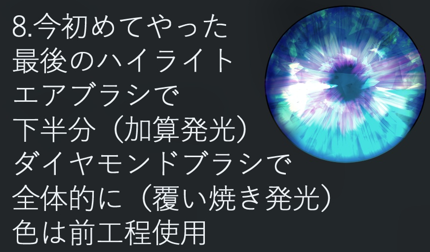 8.用现在第一次做的最后的高光空气刷子用下半部分(加算发光)钻石刷子整体(覆盖烧发光)颜色前工序使用