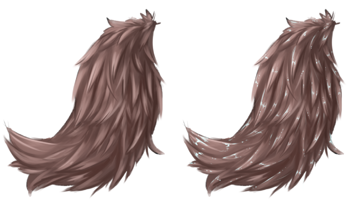 步骤6、建立基础明暗处理和高光的时候到了! 创建新图层,并将其剪辑到下面基于尾部的颜色。