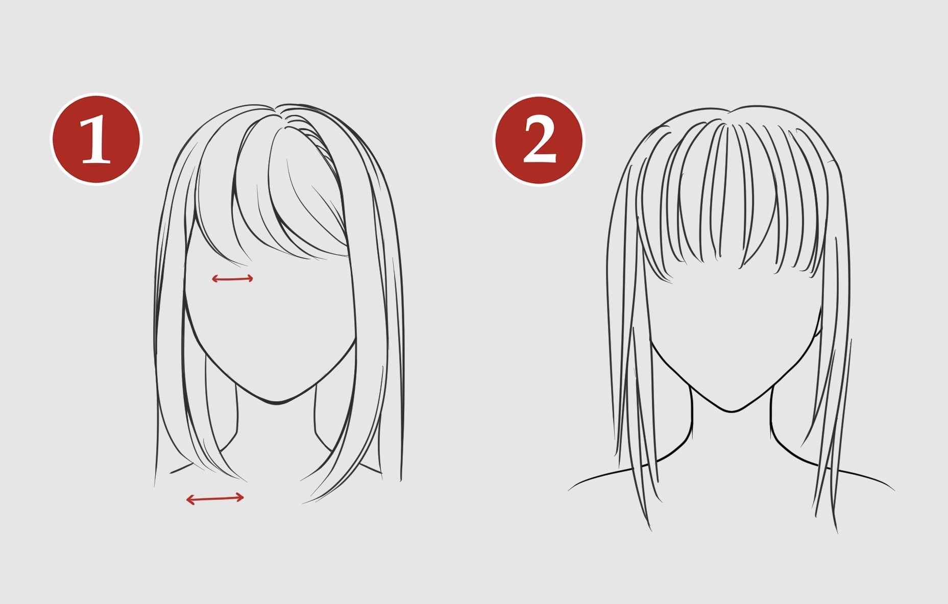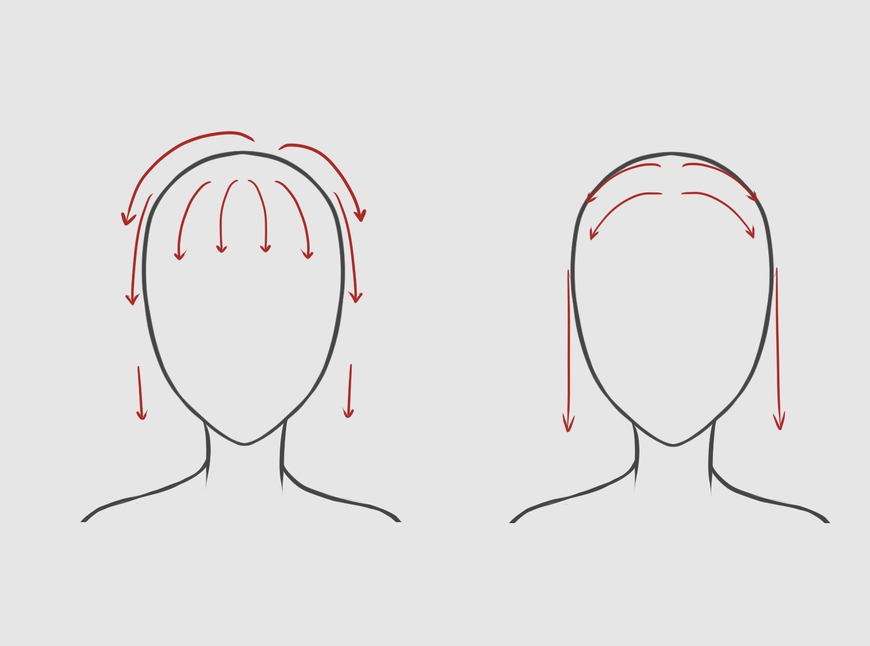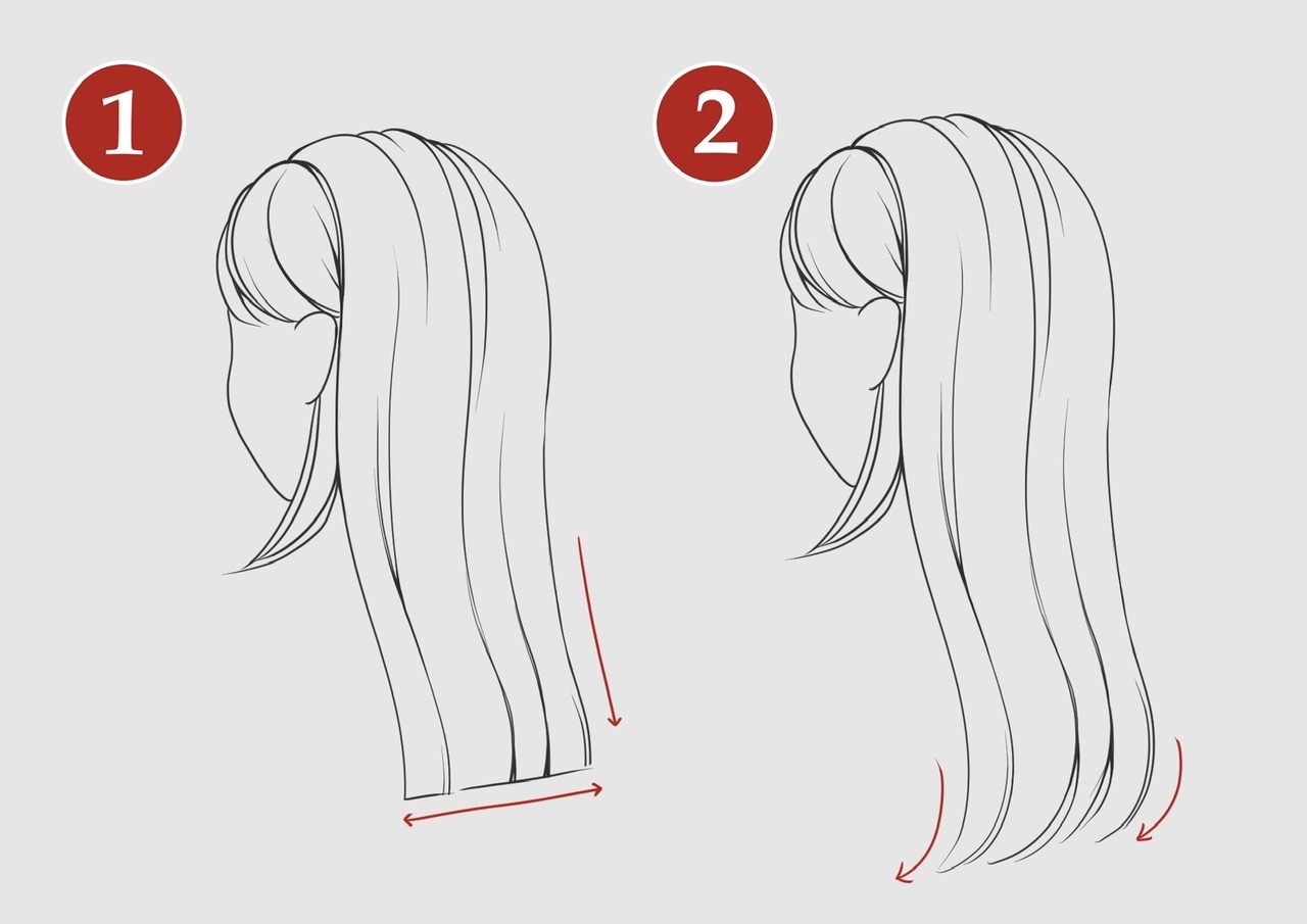 (2)如果你画太多股线,你的头发会显得凌乱和稀疏。相反,大的部分创造了体积。