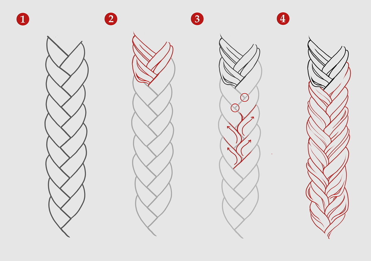 (3)如上一章所述画出头发。然后按照分步编织教程绘制辫子。