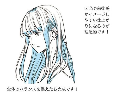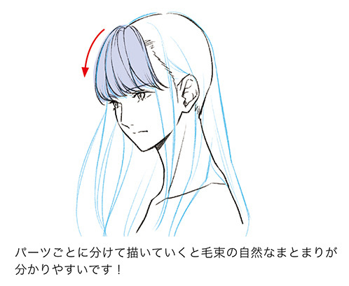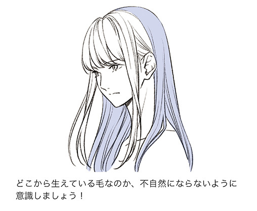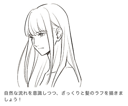 一边意识到自然的流动,一边粗略地描绘头发的草图!