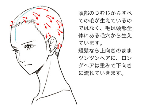 不是所有的毛都是从头部的旋柄长出来的,而是从整个头部的毛孔长出来的。 短发的话,保持向上的状态,长发在重量的作用下向下流动。