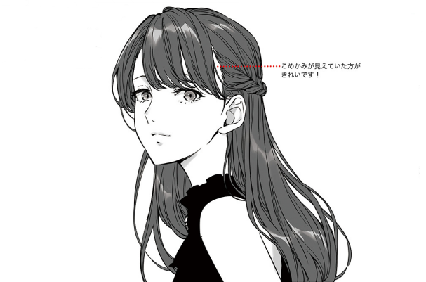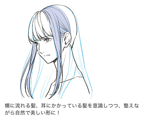 一边注意横向流动的头发,挂在耳朵上的头发,一边整理一边自然美丽的形状!