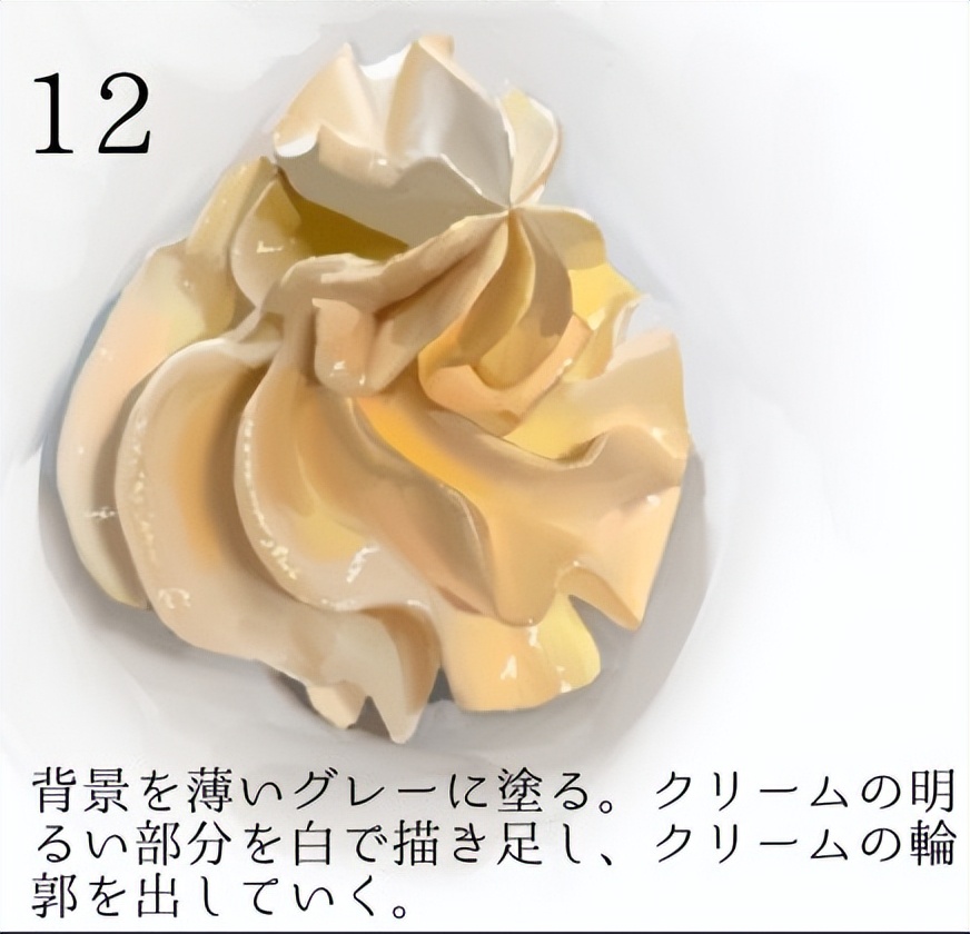 12、把背景涂成浅灰色。用白色画出奶油明亮的部分,露出奶油的轮廓。