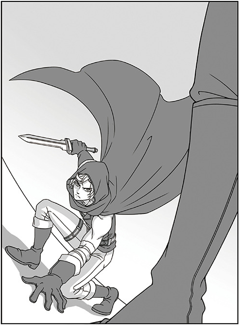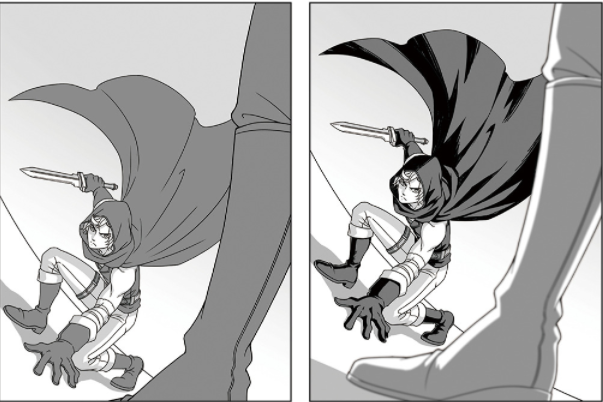 另一方面,在这张插图中,通过活用远近法来将主题区分为大、中、小。 通过这样做,可以将视线引导到最大的主题上。