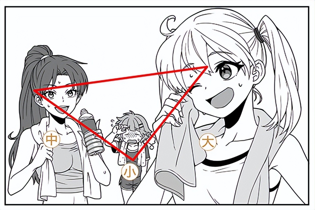 主主题根据重要性在尺寸和配置场所表现序列吧。下面的插图在远近感和框架内使用三角形。