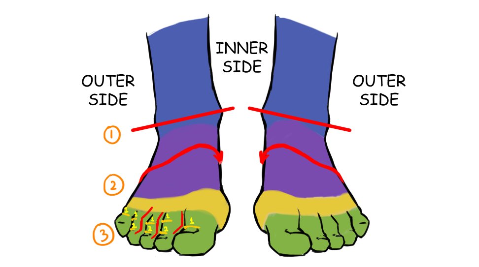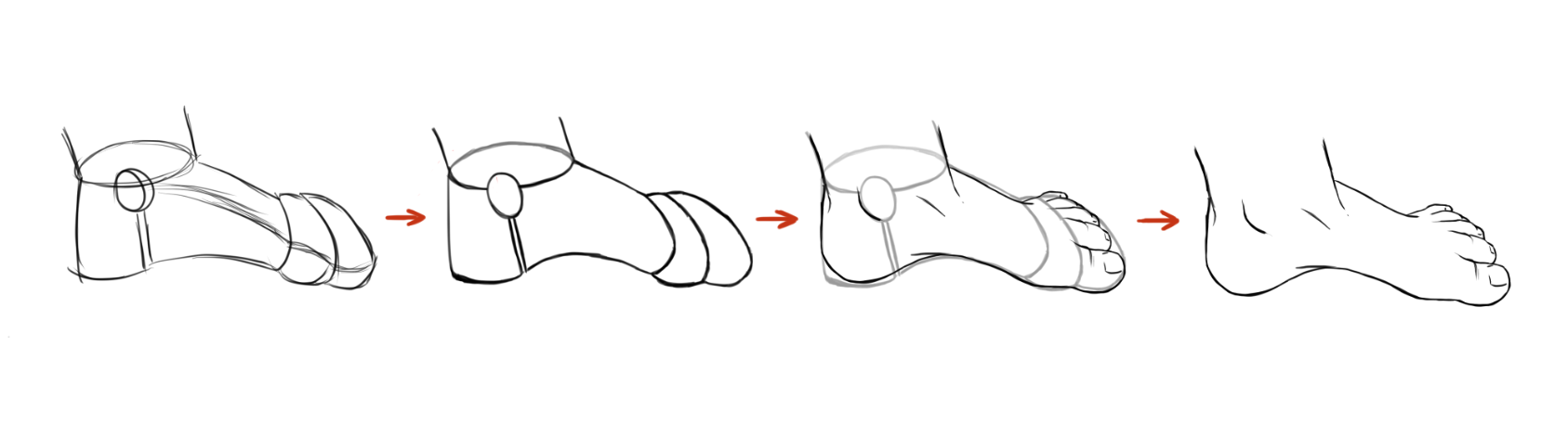 通过从不同的角度了解这些部分的样子,您可以通过参考将它们可视化,并专注于单独正确处理每个简化的部分,而不是整只脚。这样会更容易。