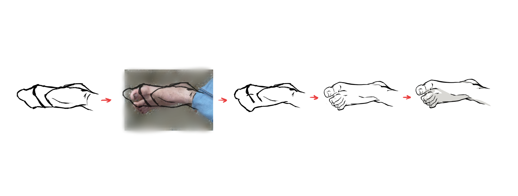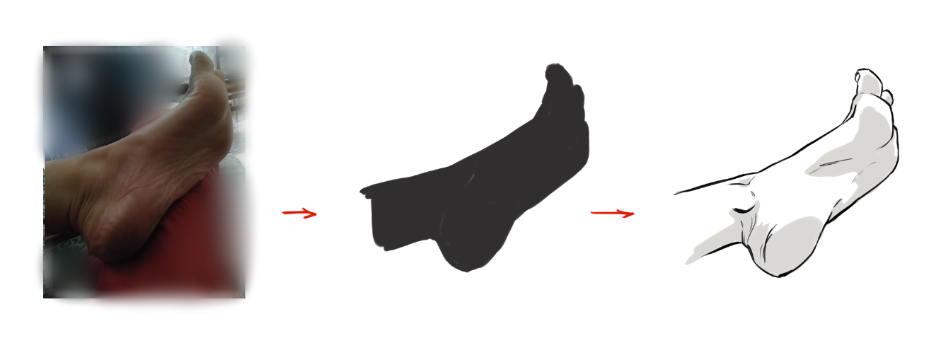 以下是如何使用这种类型的结构从粗略的草图移动到完整的足部图。