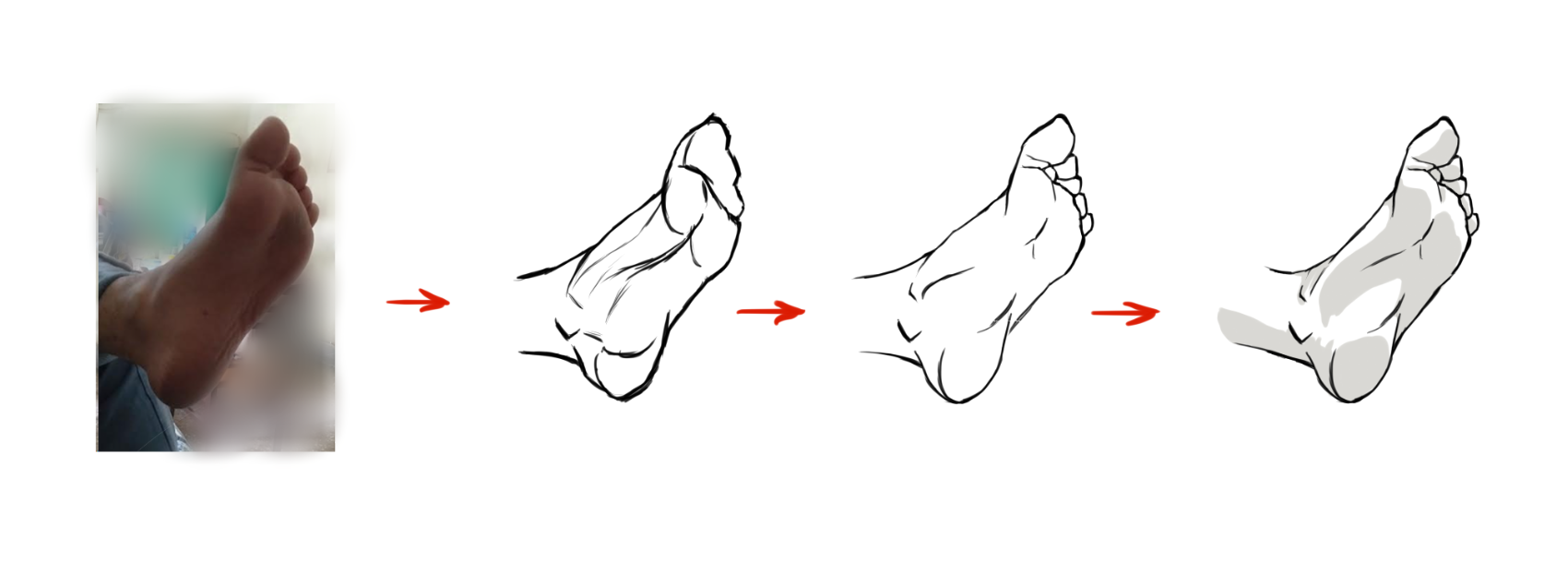 每当你画一些东西时,参考是非常重要的,尤其是当你不熟悉和复杂的时候,比如你的脚。除了简化的构造方法外,您还可以通过以下方式参考参考资料: