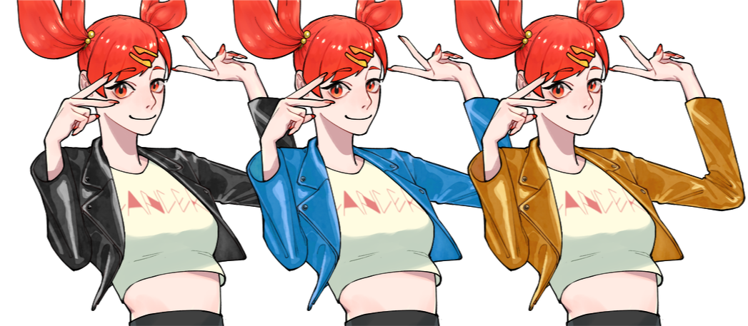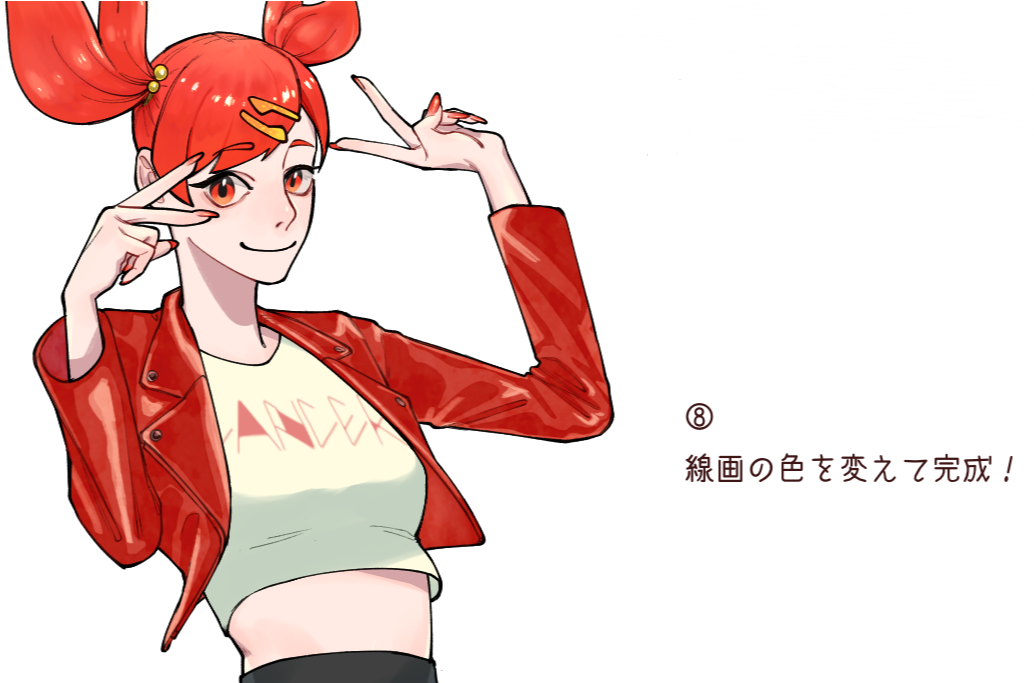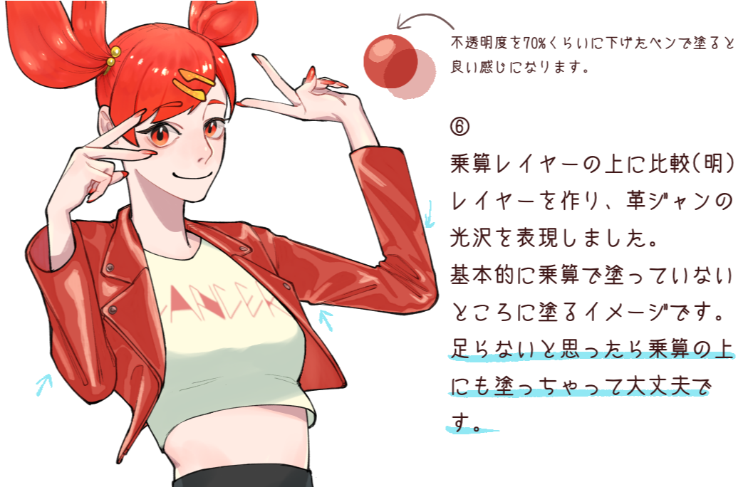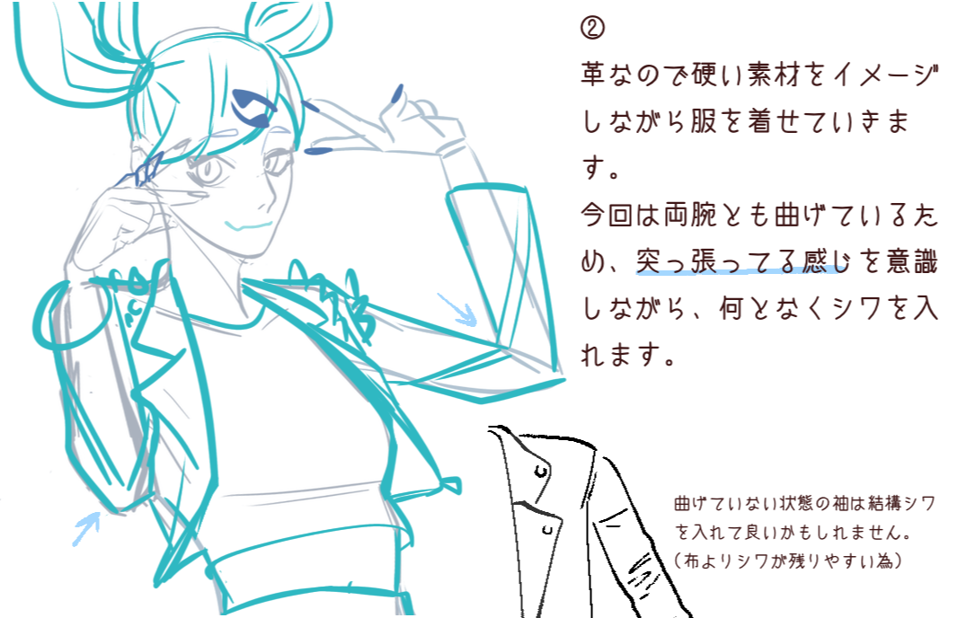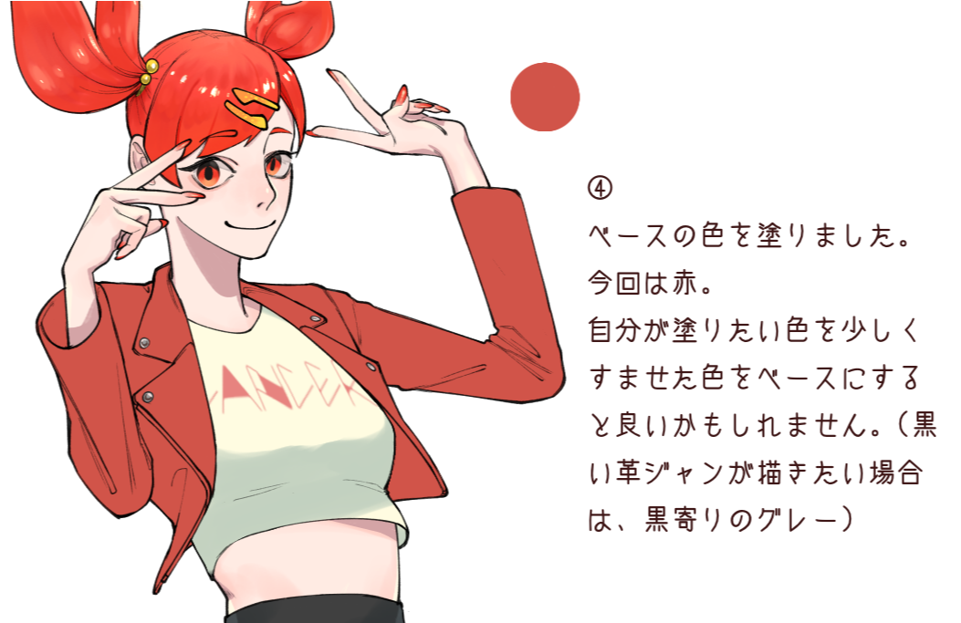 把自己涂的颜色稍微暗一点的颜色作为步调可能会比较好。(想画黑色皮夹克的话,是黑色的灰色)