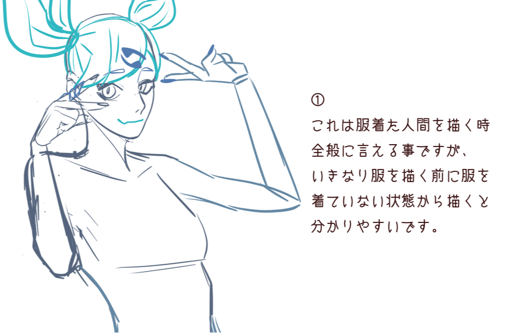 大家在描绘穿着衣服的人的时候都可以说,现在在画衣服之前,从没有穿衣服的状态开始画的话就容易理解了。