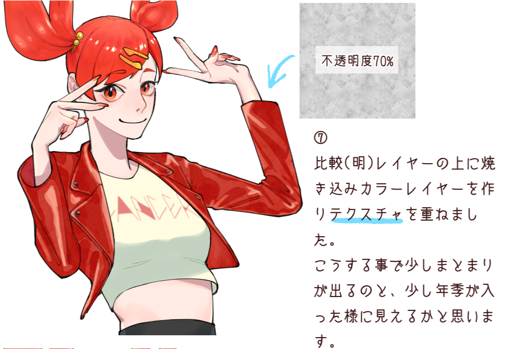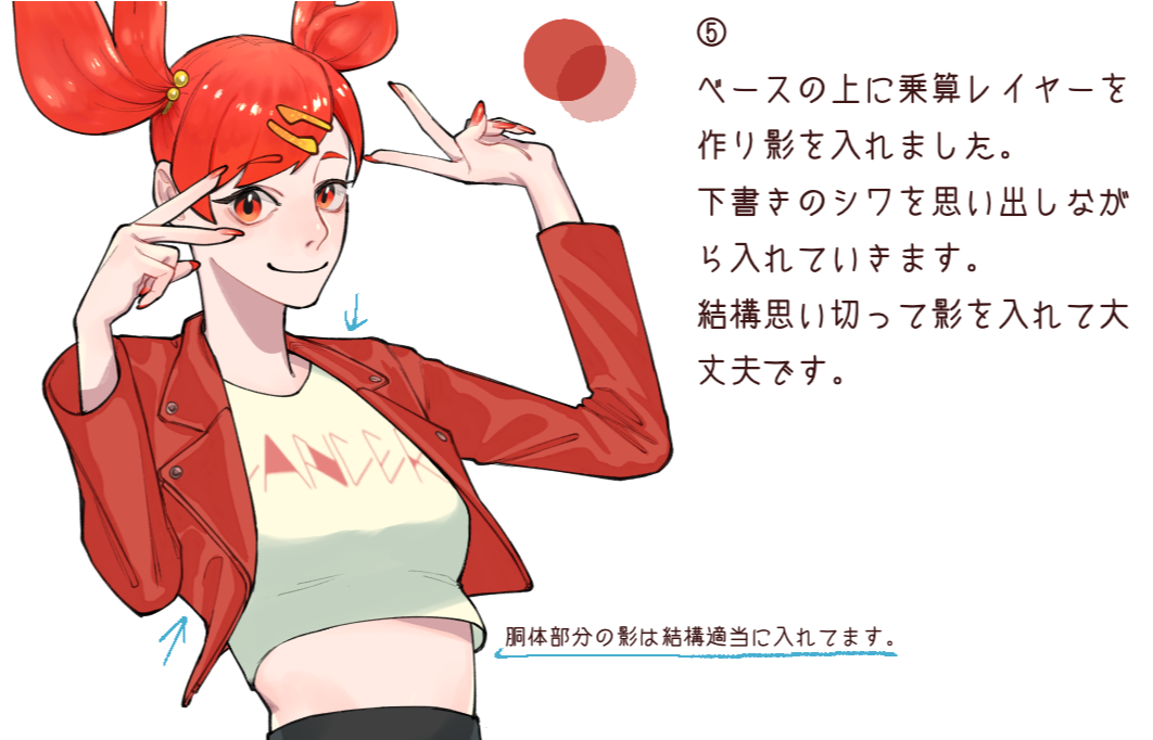 在步调上制作了正片叠加层,放入了影子。一边想起草稿上的皱纹一边放进去。下定决心把影子放进去没关系。
