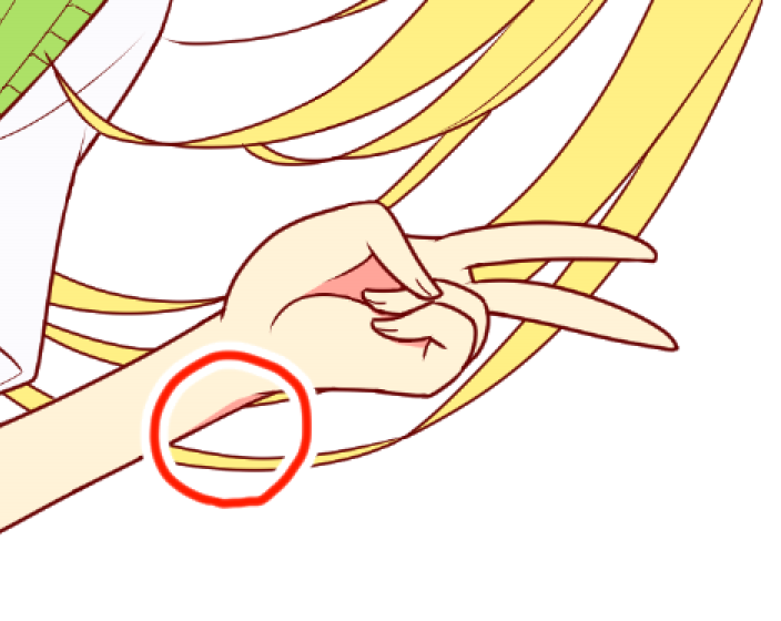此处将手腕部分的阴影视为右侧光源是错误的,但由于“手掌朝向的方向向左”和“阴影范围较窄”,我认为是左侧光源并在右侧添加了阴影。