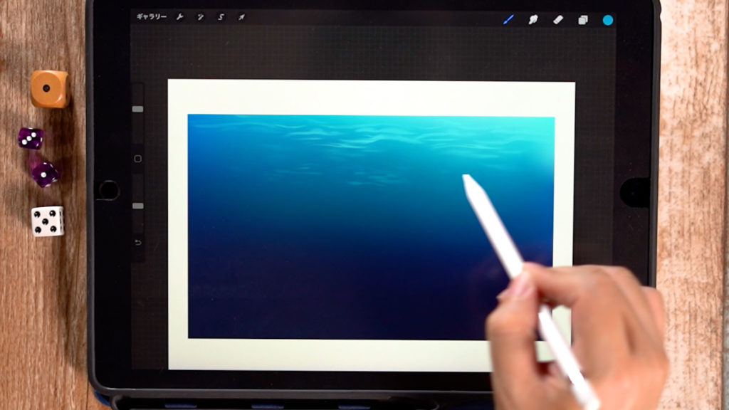 笔刷“元素”→“海洋”使用进行描绘。 这个刷子在画大海的时候很方便,