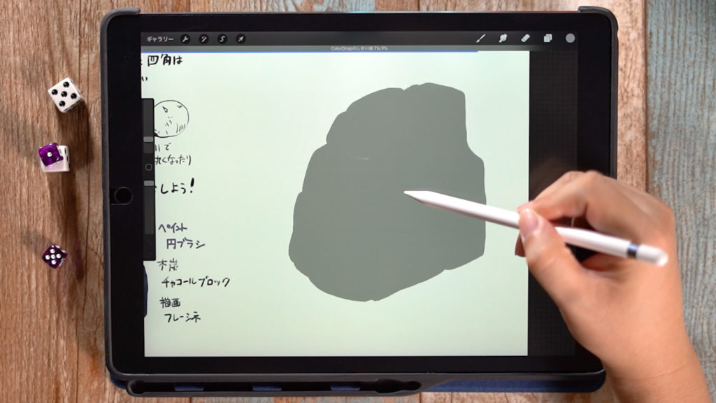 此次绘制的岩石从左上开始碰撞,因此左上明亮,右下因阴影而变暗。