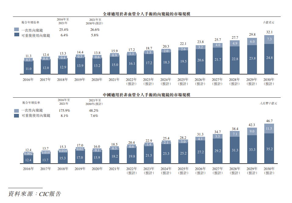 该公司招股书显示,2016年至2021年中国有源医疗器械的市场规模由66亿元增至112亿元,复合年增长率为11.3%,预计2030年将达到人民币496亿元。随着非血管介入手术数量不断增长,未来无源耗材的市场规模也将不断扩大。