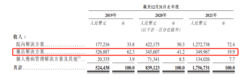 其次,在营收方面,智云健康主要收入来源包括院内解决方案、药店解决方案和个人慢病管理解决方案及其他三个板块。