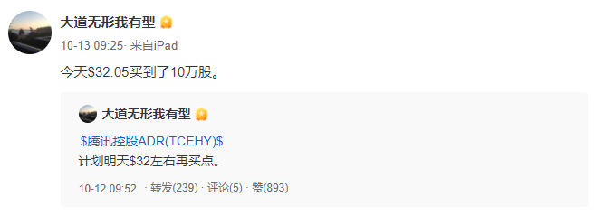 10月13日,段永平年内第五次加仓腾讯(ADR)。此前,他已经于2月、3月、4月、8月至少4次自称抄底腾讯。