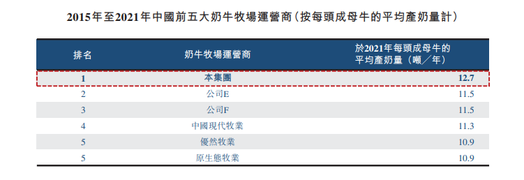 澳亚集团是中国前五大奶牛牧场运营商之一,为多元化的下游乳制品制造商客户群提供优质原料奶。2021年,澳亚集团原料奶的销量、销售额及产量在国内所有奶牛牧场运营商中分别排名第三、第四及第五,市场份额分别为1.6%、1.8%及1.7%。