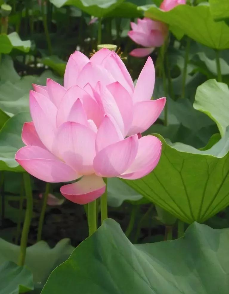 重重蕊叶相怜,似青帔艳妆神仙侣