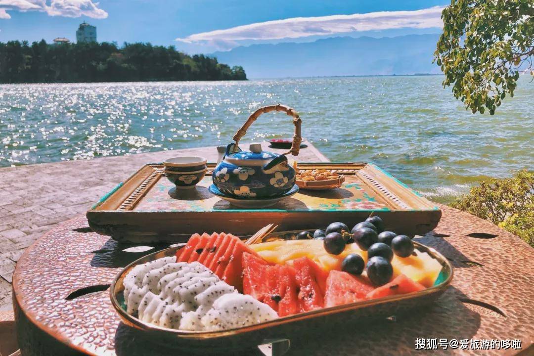 可能是心理作用吧,总觉得配着这样的美景,就连普通的茶水和新鲜的水果,品上去都尤其醉人。