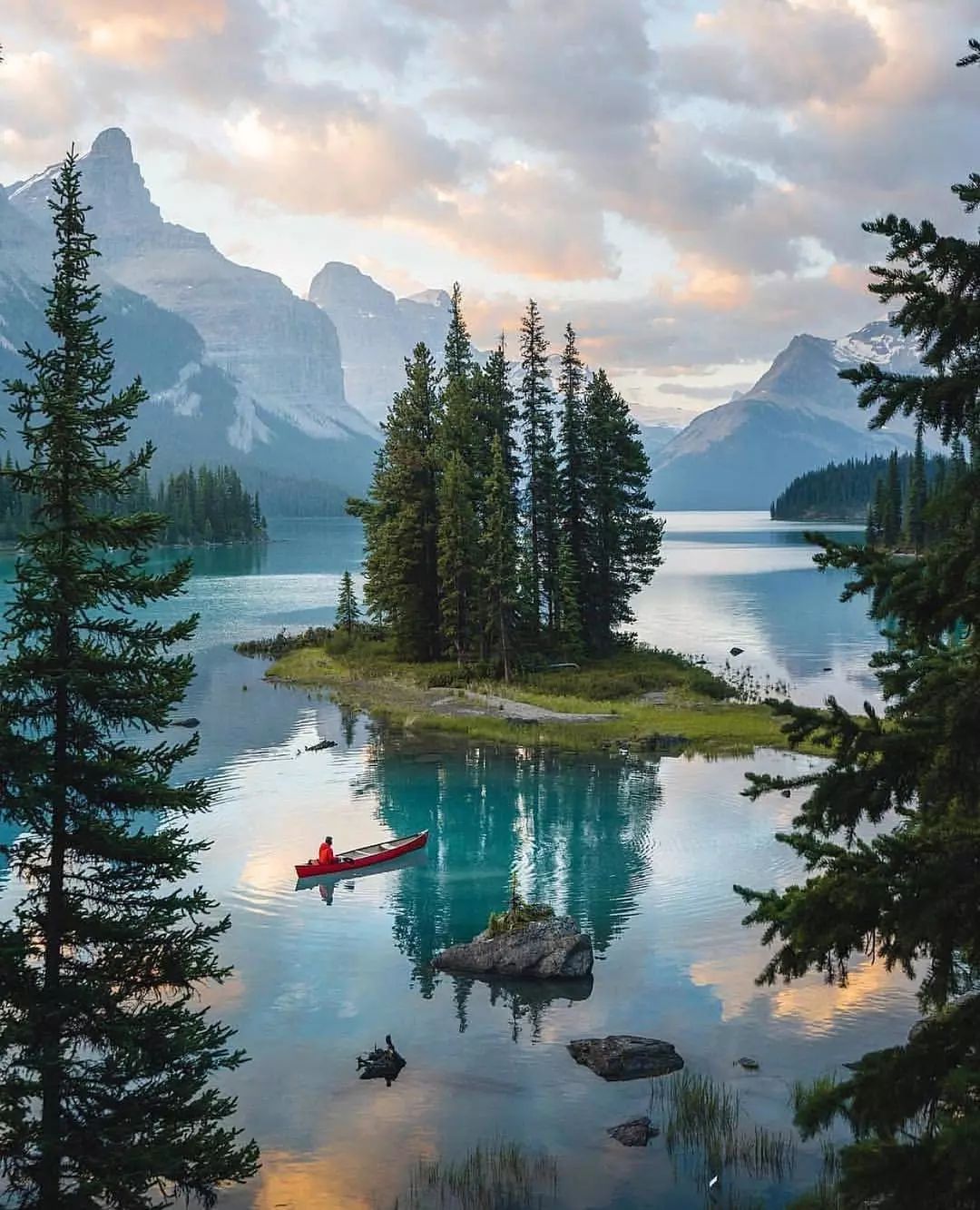 加拿大玛琳湖(Maligne Lake)精灵岛(Spirit Island)