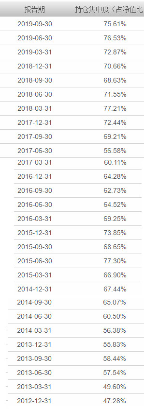 张坤的持股特别集中,认为集中投资长期受益更高。而且近几年越来越集中....