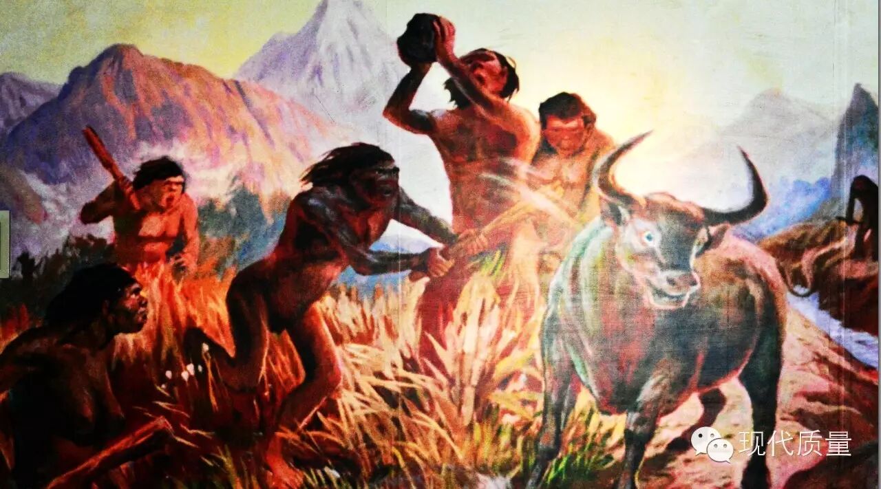据想象先祖们是这个样子的——看把这五人一牛给乐的,喊茄子了吗?哦,对了,那时有茄子吗?没有,茄子是160万年后古印度人最先吃的。而且当时没火,茄子生吃会拉肚子、那可是大麻烦!