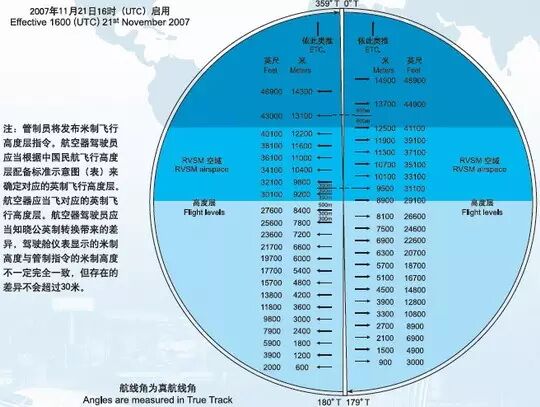 这张图比较专业,规定了飞机的垂直距离。简而言之,飞机配备了不同的飞行高度,相同方向的一般是以600米为高度级差、不同方向的互相错开,也就是两架飞机在空中垂直距离最小最小为300米,但这个数据对拍照是没有意义的,因为此时别的飞机在你的头顶或脚下,作为乘客通过舷窗是拍不到什么的;