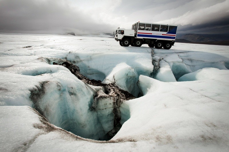 旅程将从雷克雅维克(冰岛首都)出发,游客们将搭乘8轮驱动卡车,在冰原上行驶1个小时后,抵达冰洞隧道口。