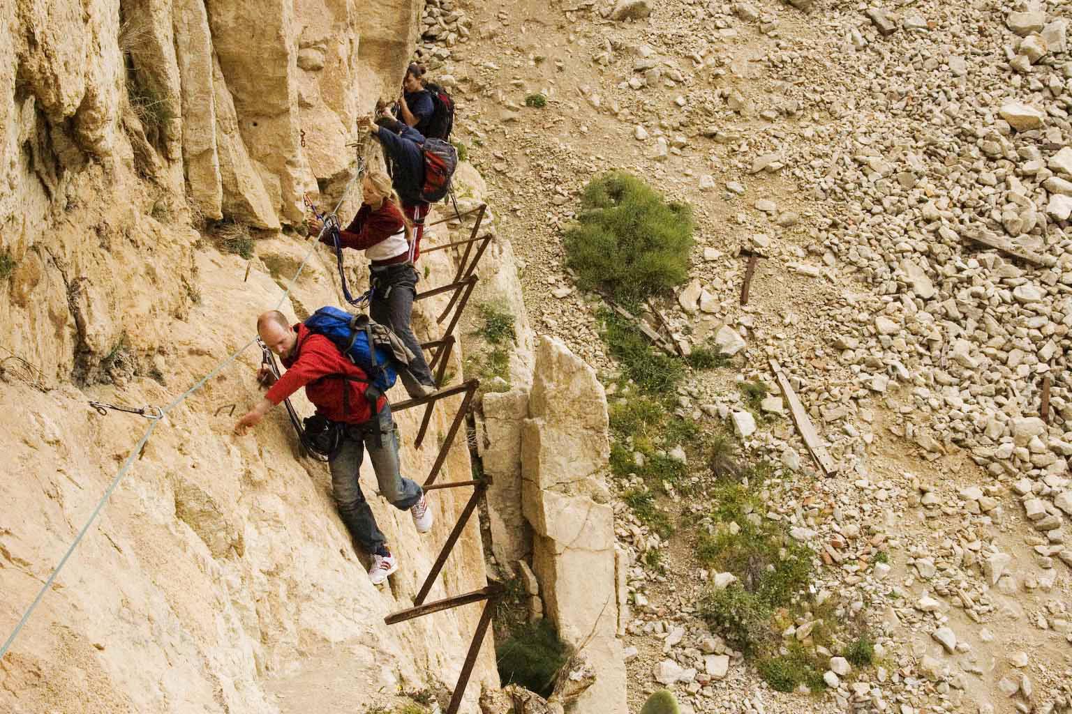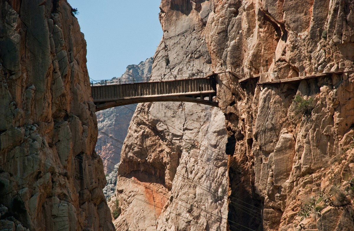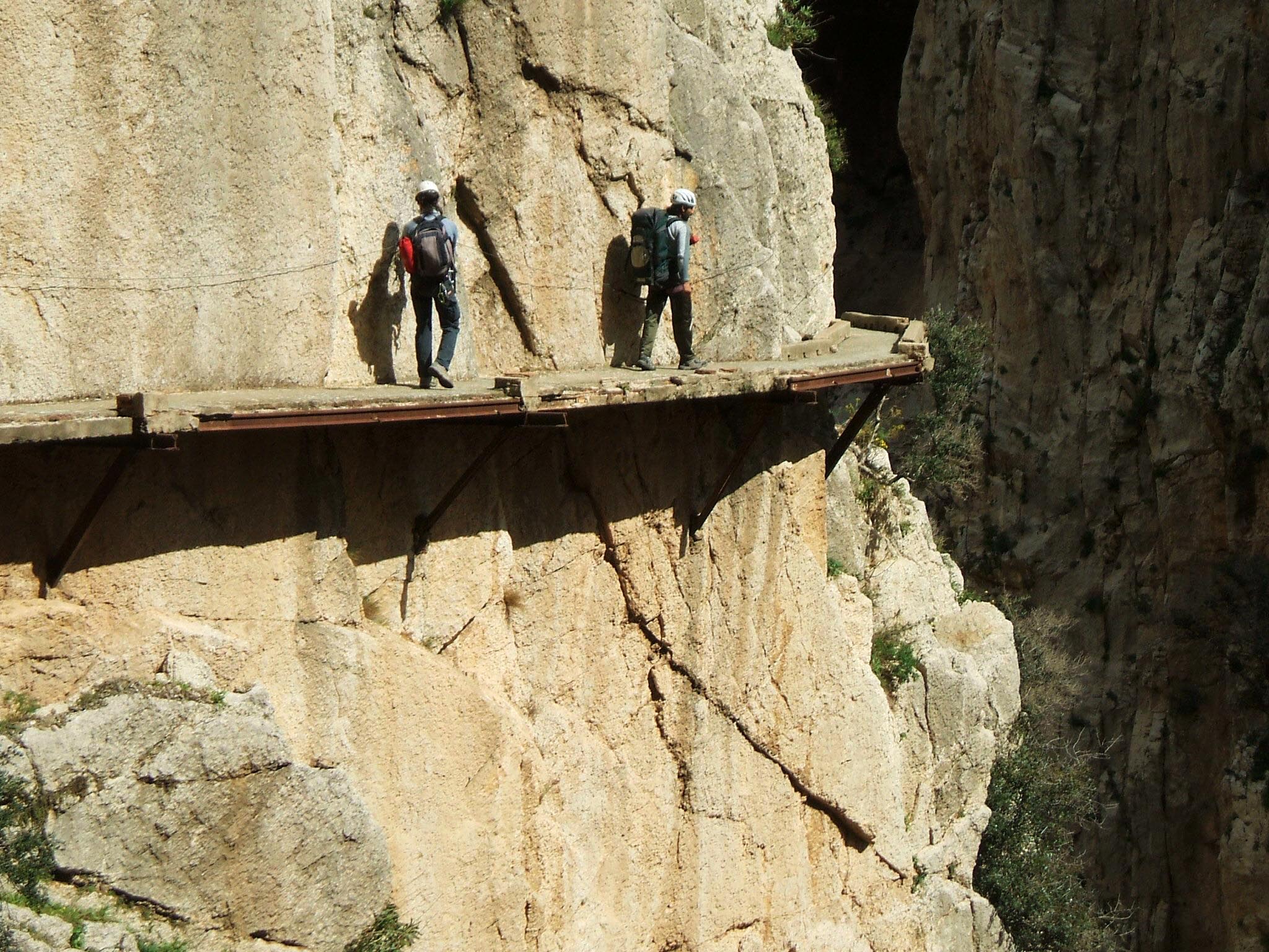 声名远播的国王步道位于西班牙南部,最初是为了便工作人员往返瓜达洛塞水坝使用的。这条修建于1905年,长1200米、宽约1米的栈道建在离埃尔乔罗河100米高的悬崖壁上,迂回上升,蜿蜒曲折。