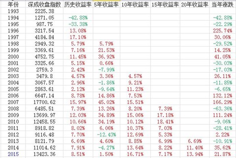1、之所以选用深成指,是因为这个指数从一开始就是一个固定样本量的指数。同时,打开k线,同中证500等牛指比,它并不是最好的指数。再加上历史够悠久,所以我们选它。选其他的也一样,大家可以自己试试做个表看看。