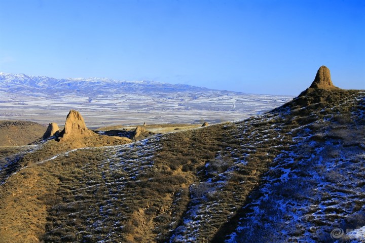 堡东面的烟墩。离开镇川堡,临时改变了行程,去对面的西寺儿梁山上的方山永固陵看看。