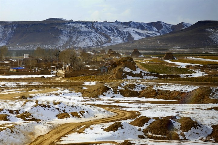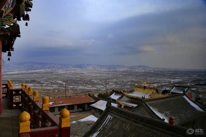 在慧泉寺藏经阁上眺望山下的镇川堡村