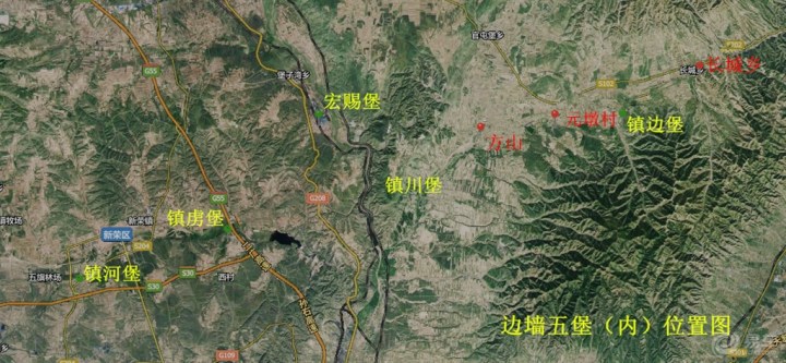 西北距宏赐堡12,5公里,堡东北10里为镇川口。都属于内墙五堡