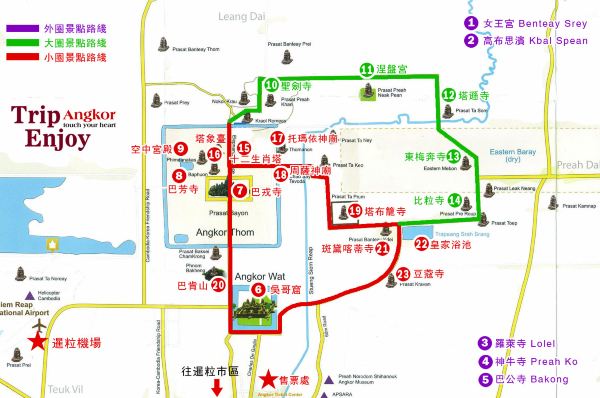 大家通过这张地图来看看吴哥小圈各景点的具体分布
