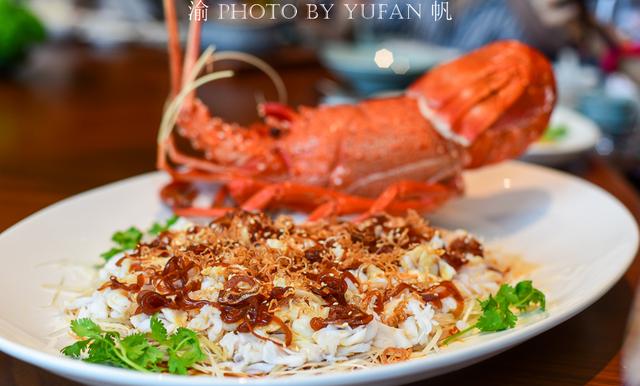 【顺德干捞澳洲龙虾】“捞起”是顺德一个菜系的代表词,连大名鼎鼎的顺德鱼生也属于“捞起”一种,其实“捞起”就是多种配料搭配主菜,以多种配料丰富主菜口感和滋味。这道菜以红葱头、芝麻、芫茜等配料,和爽口鲜甜的澳洲龙虾在舌尖上作伴,甚是清爽美味。