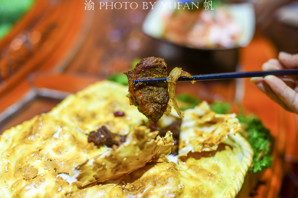 【一品富贵羊排】非常有仪式感的一道菜,据当地朋友介绍,是采用新疆本地羊的肋条肉,先淹后烤的方式成菜,用面把羊肉包起来烤制,可以最大成度的锁住羊肉的香味,待美食上桌,再由主客拿刀把面包划开,其香味迎面扑来,可谓既好看,又好吃。